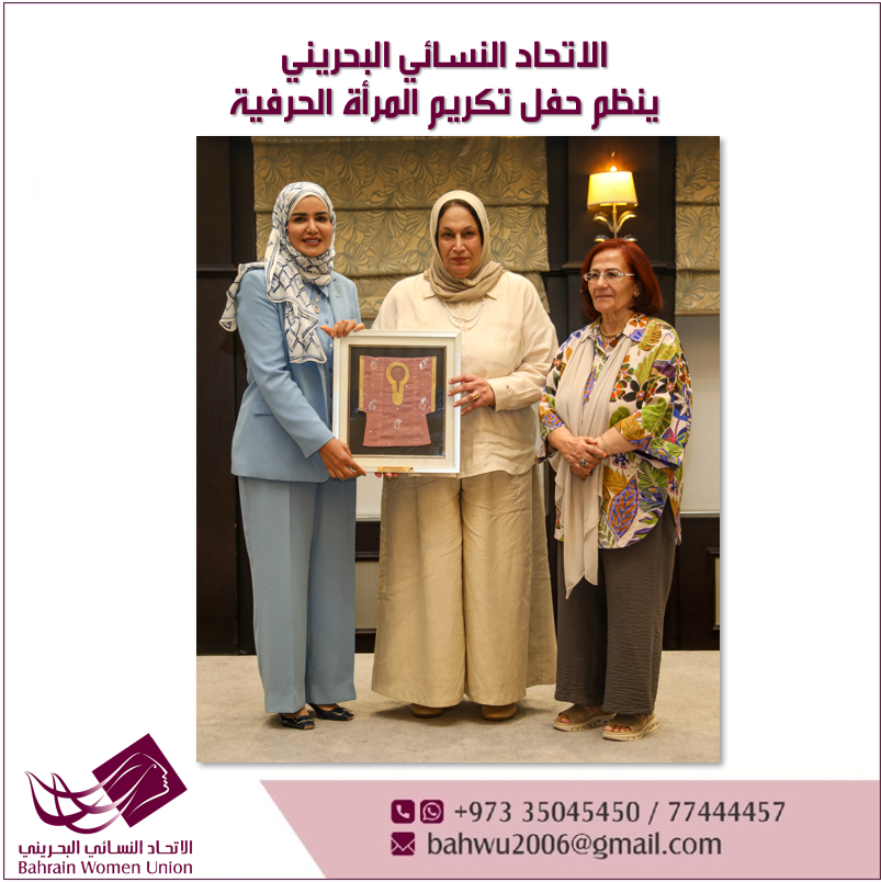نظّم الاتحاد النسائي البحريني صباح يوم الإثنين الموافق 11 أغسطس، في قاعة الرفاع بفندق الريجنسي إنتركونتيننتال، حفل تكريم الفائزات في "مسابقة الأستاذة ثاجبة المنصوري لدعم المرأة العاملة في المجال الحرفي".