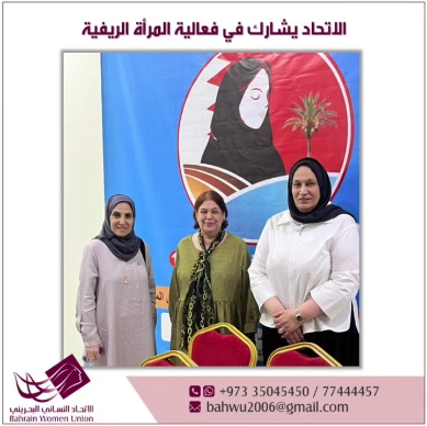 Bahrain Women Union participated in the "Rural Women's Day" event organized by the Bahrain Initiatives Society in conjunction with the Bahrain Sociologists Association on Wednesday evening, October 15, 2025, at the Bahrain Sociologists Association headquarters in the Al Buhair area, under the patronage of His Excellency the First Deputy Speaker of Parliament, Abdulnabi Salman.